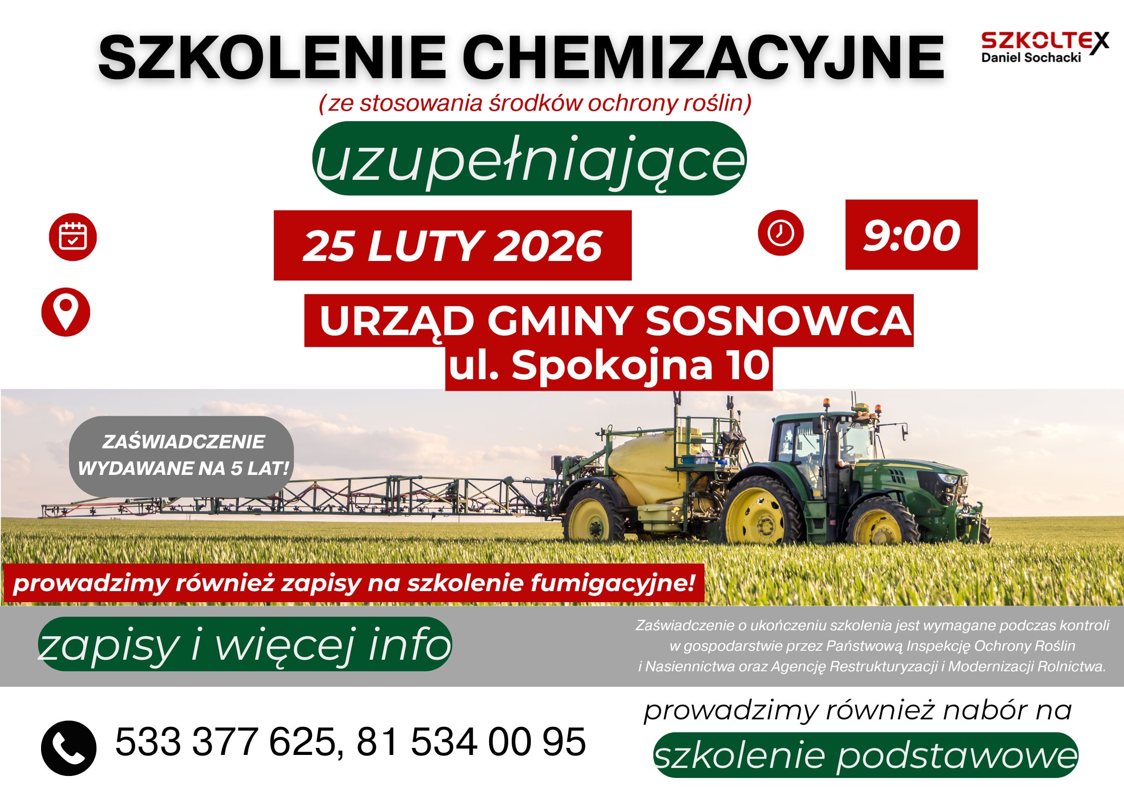 Informacja nt. Szkolenia chemizacyjnego – uzupełniającego.
