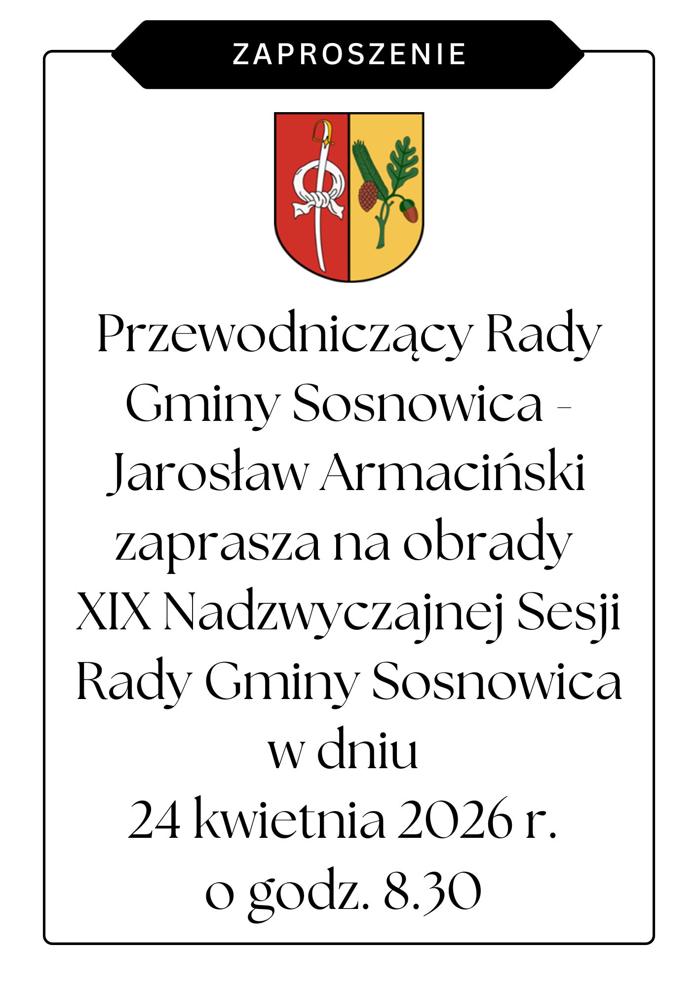 Zaproszenie na Nadzwyczajną Sesję Rady Gminy Sosnowica.
