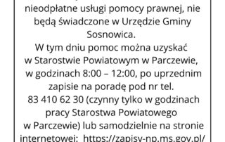 Informacja nt. nieodpłatnych porad prawnych.