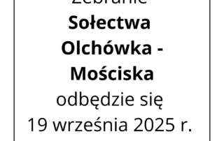 Informacja na temat zebrania sołeckiego – Zebranie Sołectwa Olchówka odbędzie się 19 września 2025 r. w domu sołtysa o godz. 16. Zapraszamy