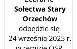 Informacja na temat zebrania sołeckiego – Zebranie Sołectwa Stary Orzechów odbędzie się 24 września 2025 r. w remizie OSP o godz. 17. Zapraszamy