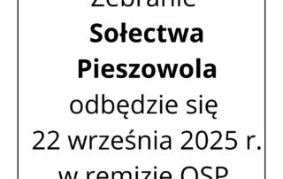 Informacja na temat zebrania sołeckiego – Zebranie Sołectwa Pieszowola odbędzie się 22 września 2025 r. w remizie OSP o godz. 17. Zapraszamy