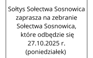Informacja na temat zebrania sołeckiego - Zebranie Sołectwa Sosnowica odbędzie się 27 października 2025 r. w GOK – u o godz. 18.00. Zapraszamy