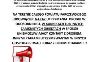 Informacja Powiatowego Lekarza Weterynarii w Parczewie – wysoce zjadliwa grypa ptaków (HPAI) oraz rzekomy pomór drobiu (ND) na terenie województwa lubelskiego