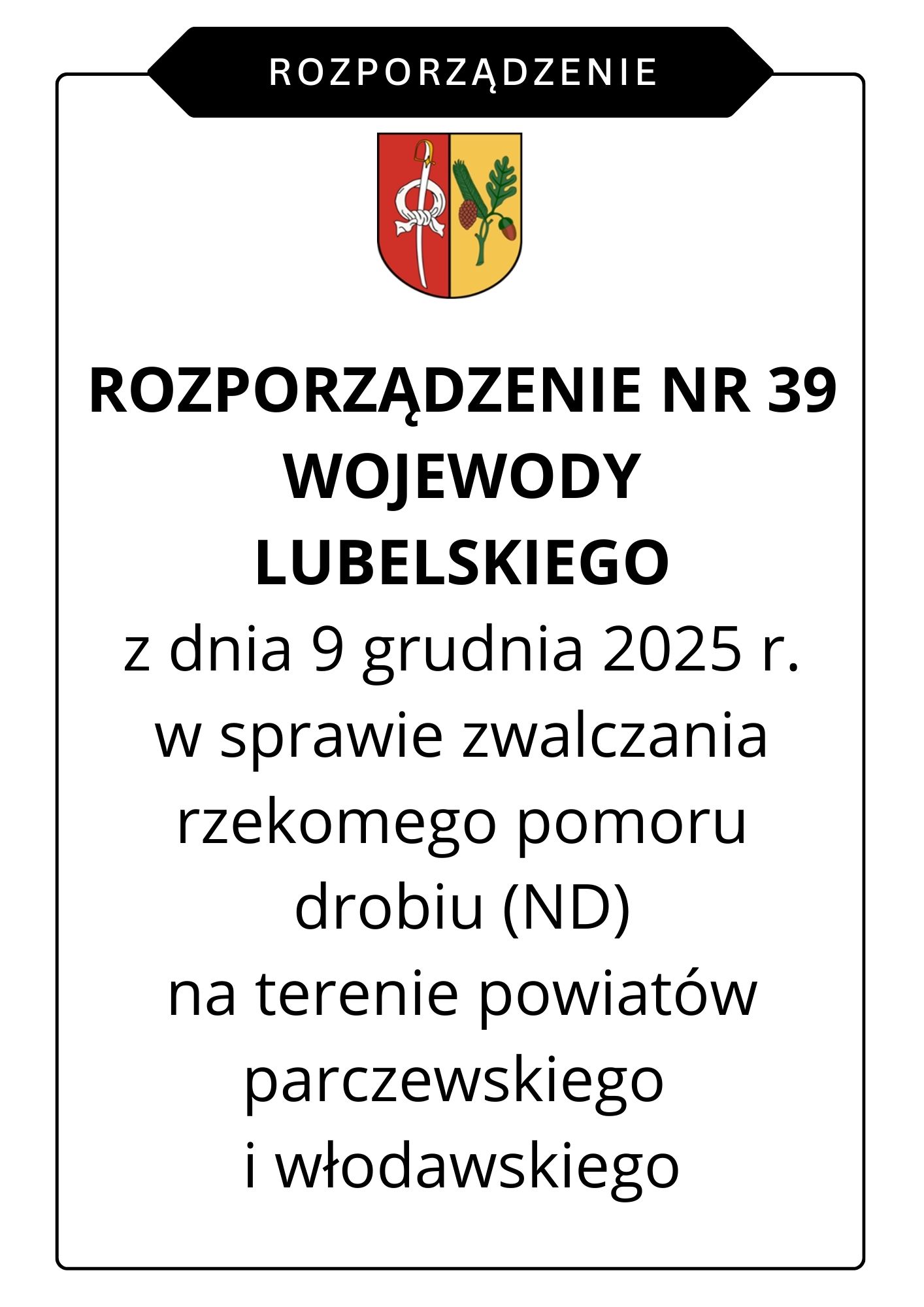 Rozporządzenie Wojewody w spr. zwalczania rzekomego pomoru drobiu.