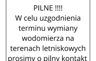W celu uzgodnienia terminu wymiany wodomierza na terenach letniskowych prosimy o pilny kontakt pod numer tel. 881 – 155 - 858