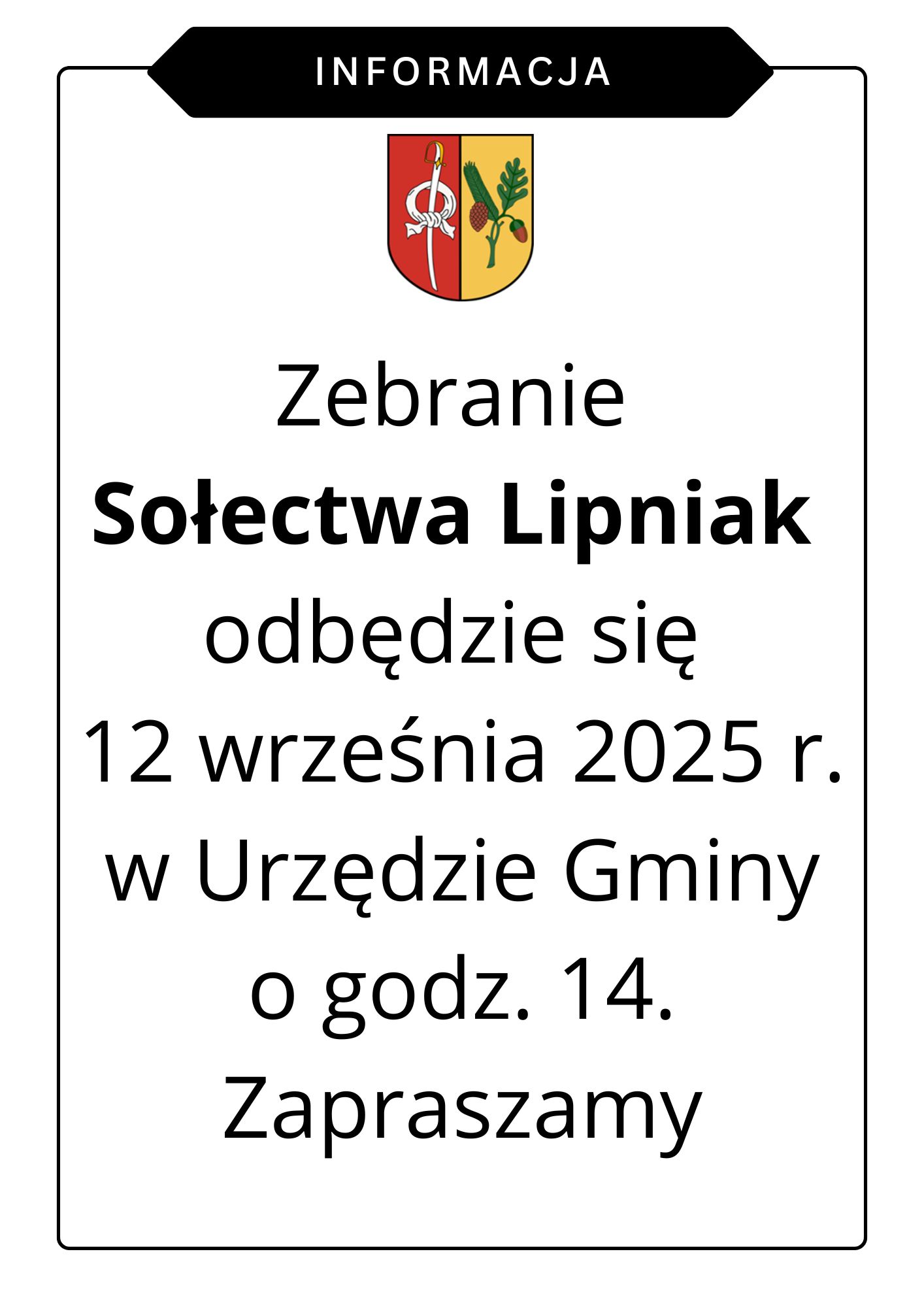 Informacja na temat zebrania sołeckiego – Zebranie Sołectwa Lipniak odbędzie [...]