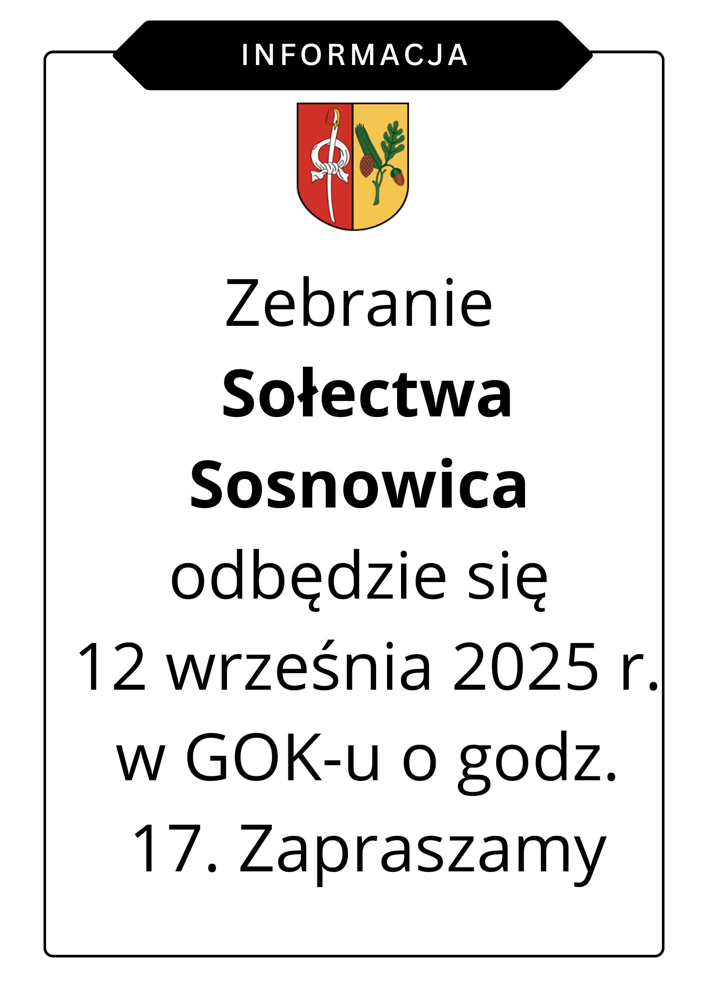 Informacja na temat zebrania sołeckiego - Zebranie Sołectwa Sosnowica odbędzie [...]