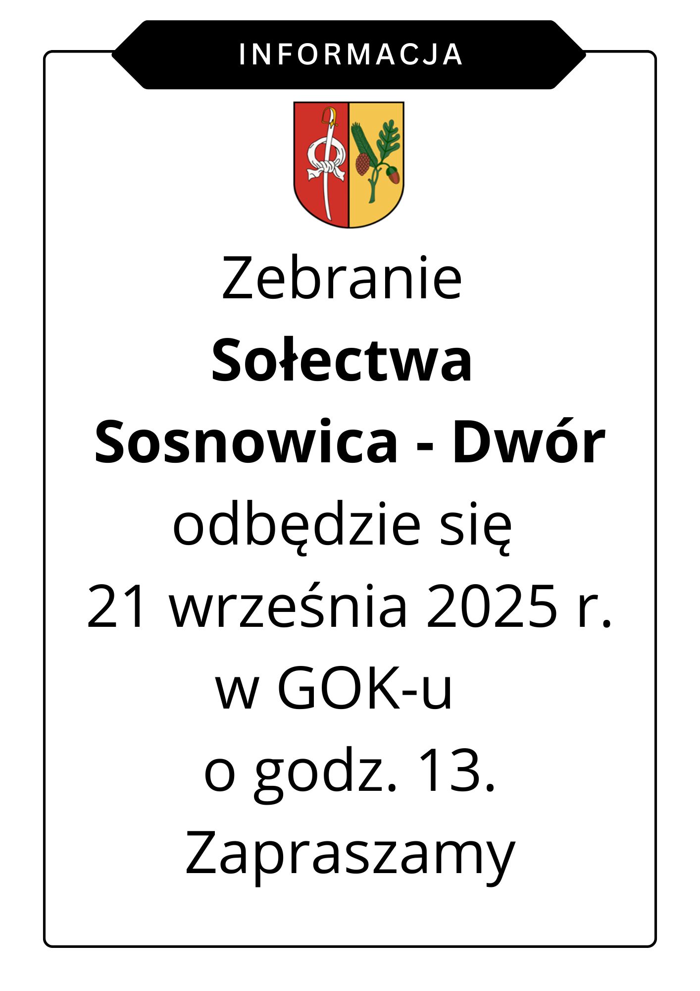 Informacja na temat zebrania sołeckiego- Zebranie Sołectwa Sosnowica - Dwór [...]