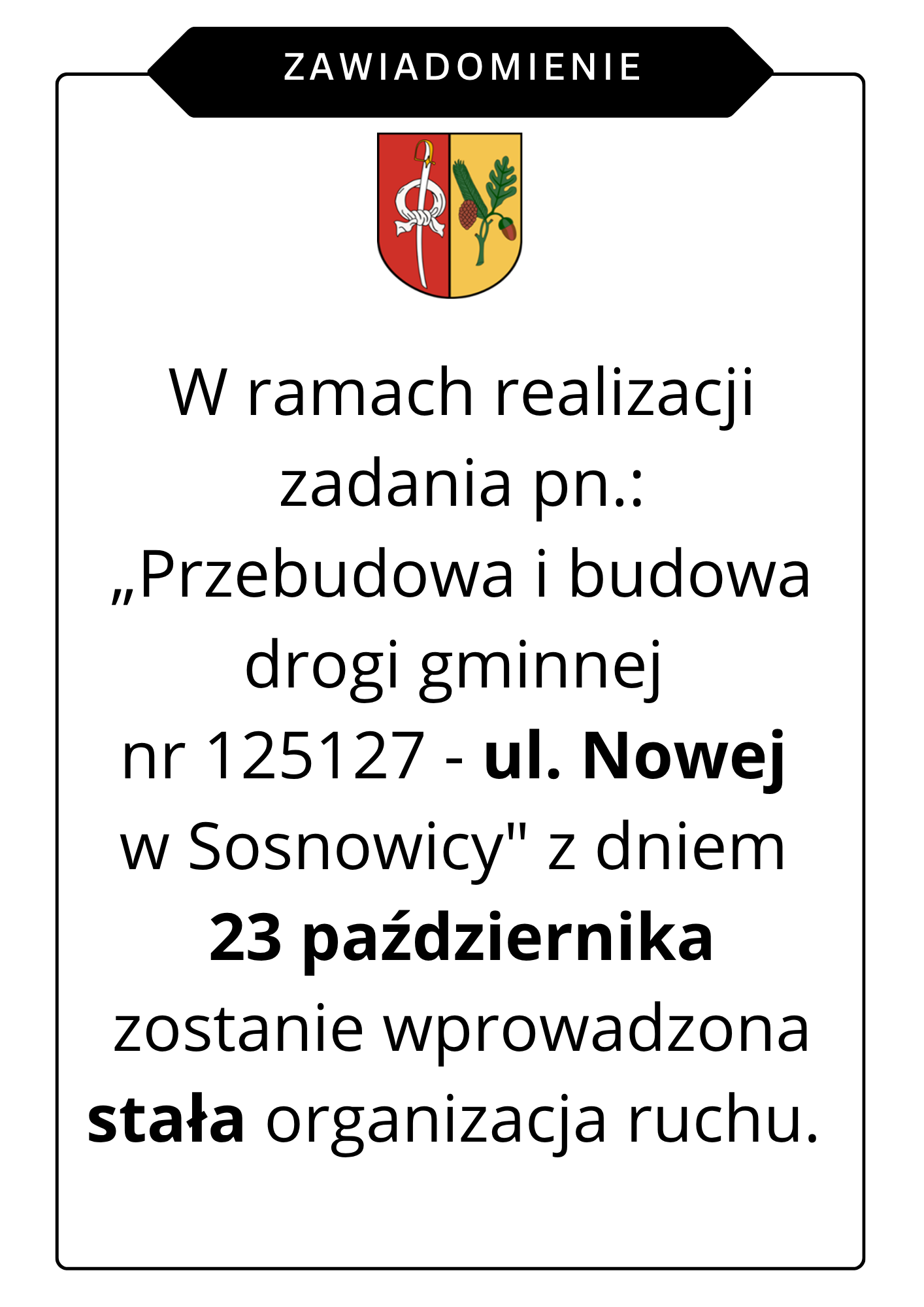 Zawiadomienie o stałej organizacji ruchu od 23 października.