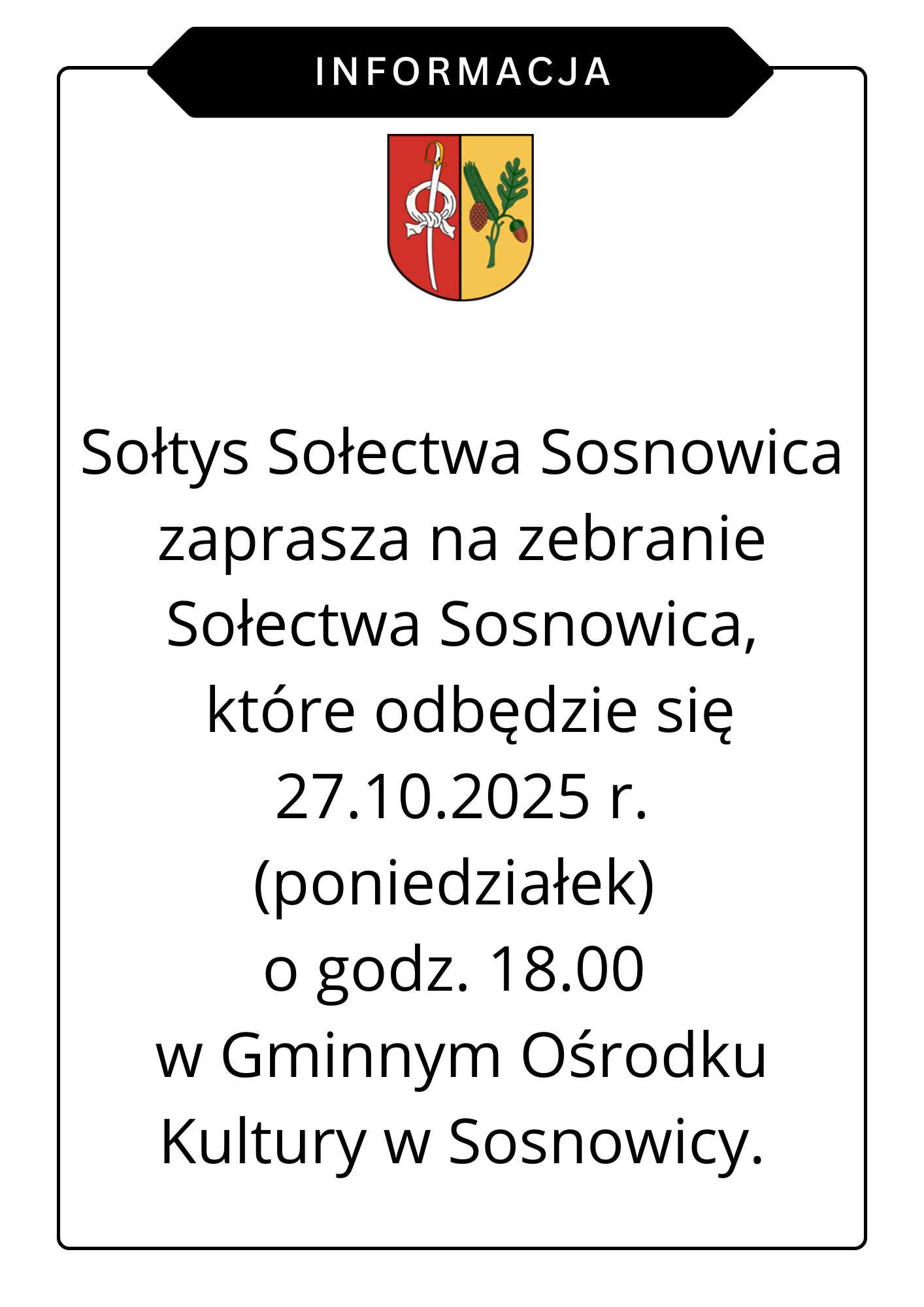 Informacja na temat zebrania sołeckiego - Zebranie Sołectwa Sosnowica odbędzie [...]