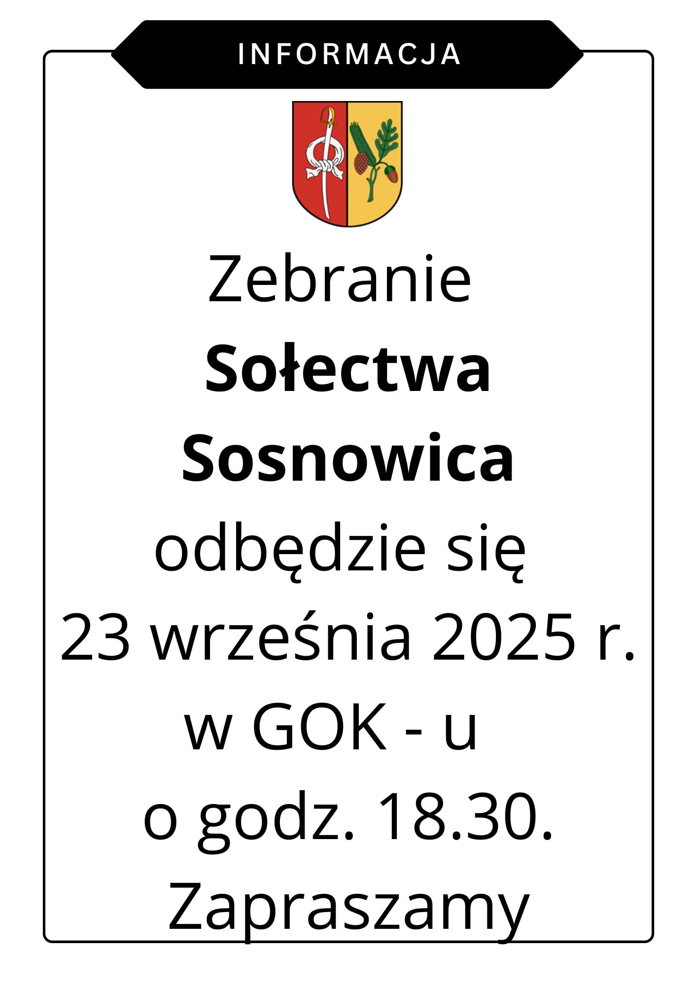 Informacja na temat zebrania sołeckiego – Zebranie Sołectwa Sosnowica odbędzie [...]